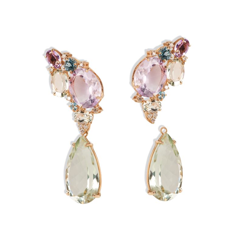 Brinco Nuance em Ouro Amarelo com Iolita, Ágata Verde, Topázio Sky e Diamante