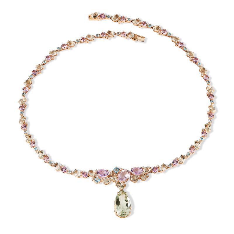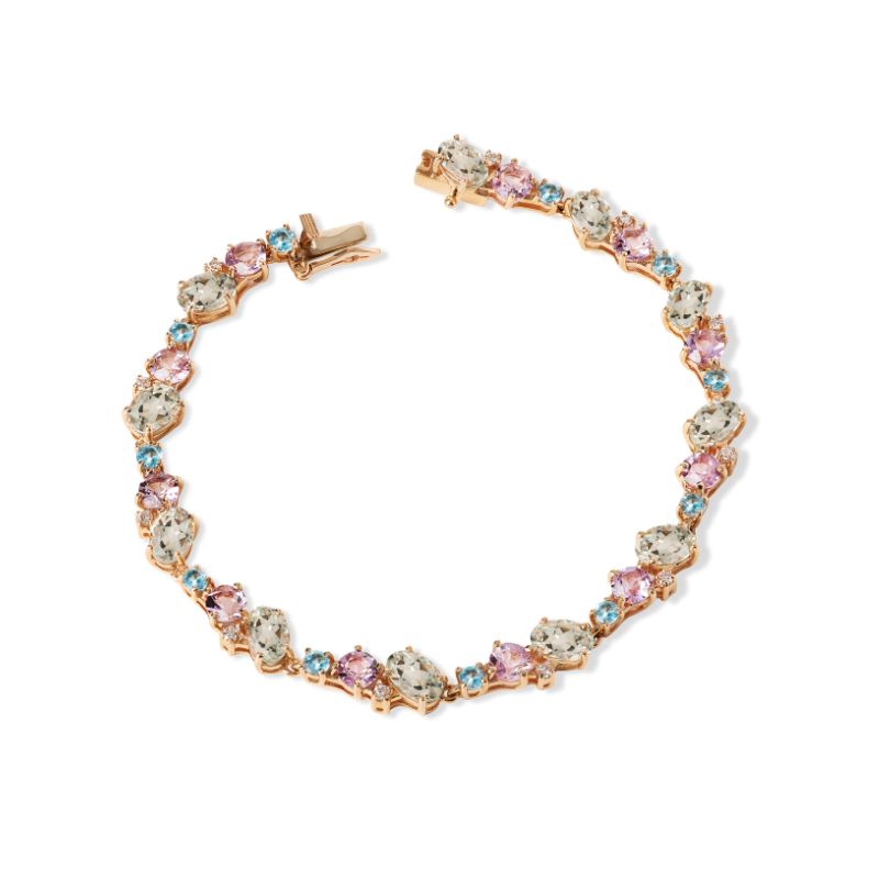 Anel Sintonia em Ouro Rosé com Ametistas, Topázios, Prasiolita e Diamantes