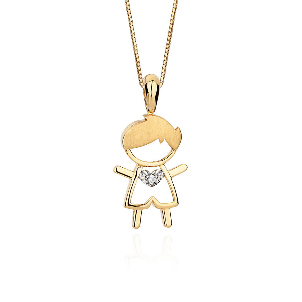 Pingente Menino em Ouro Amarelo com Diamante - Coleção Cantiga