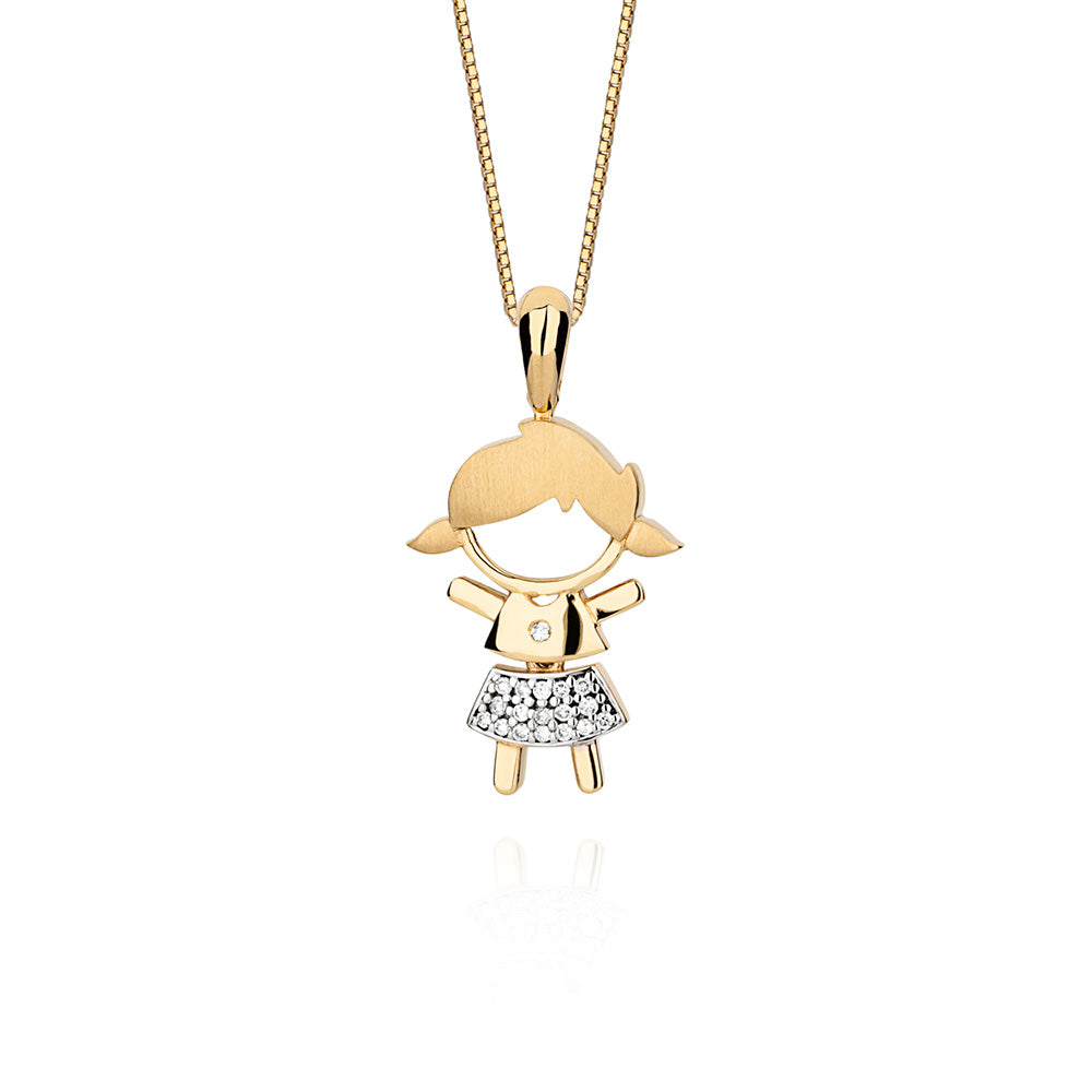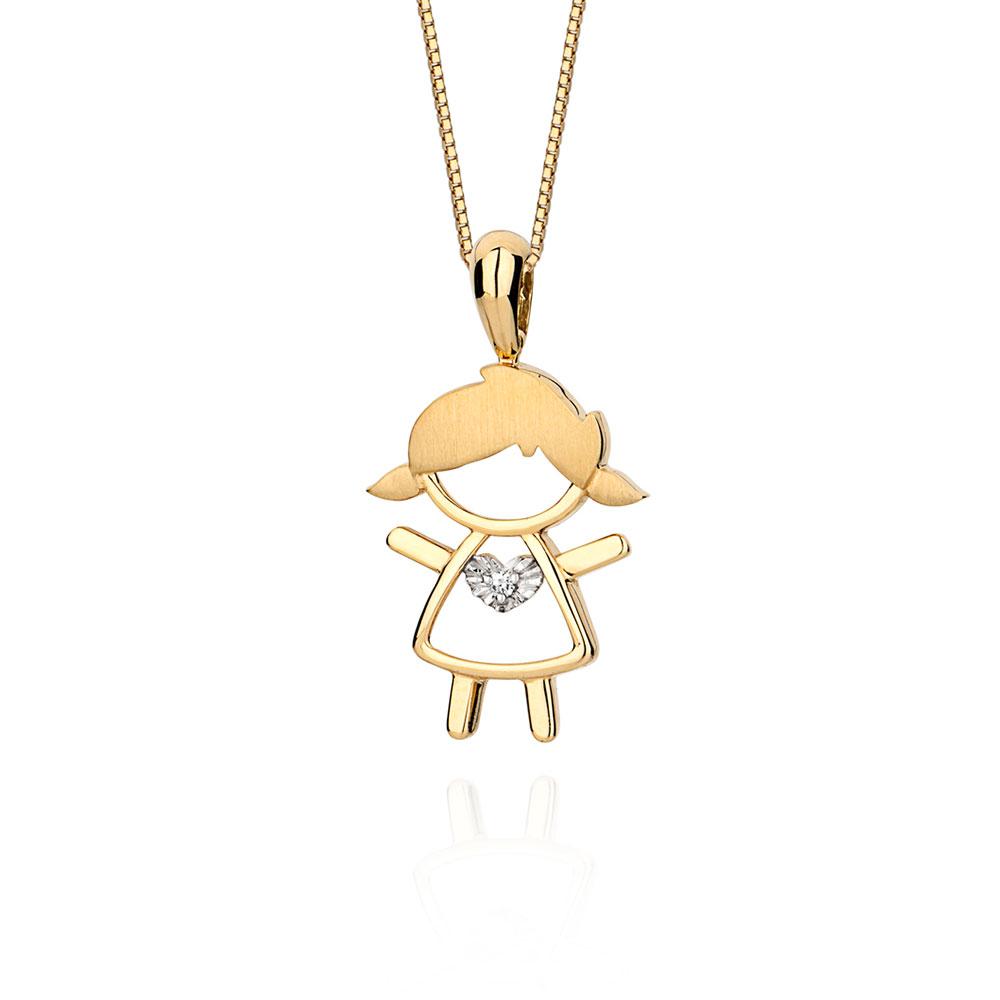 Pingente Menina em Ouro Amarelo com Diamante - Coleção Cantiga