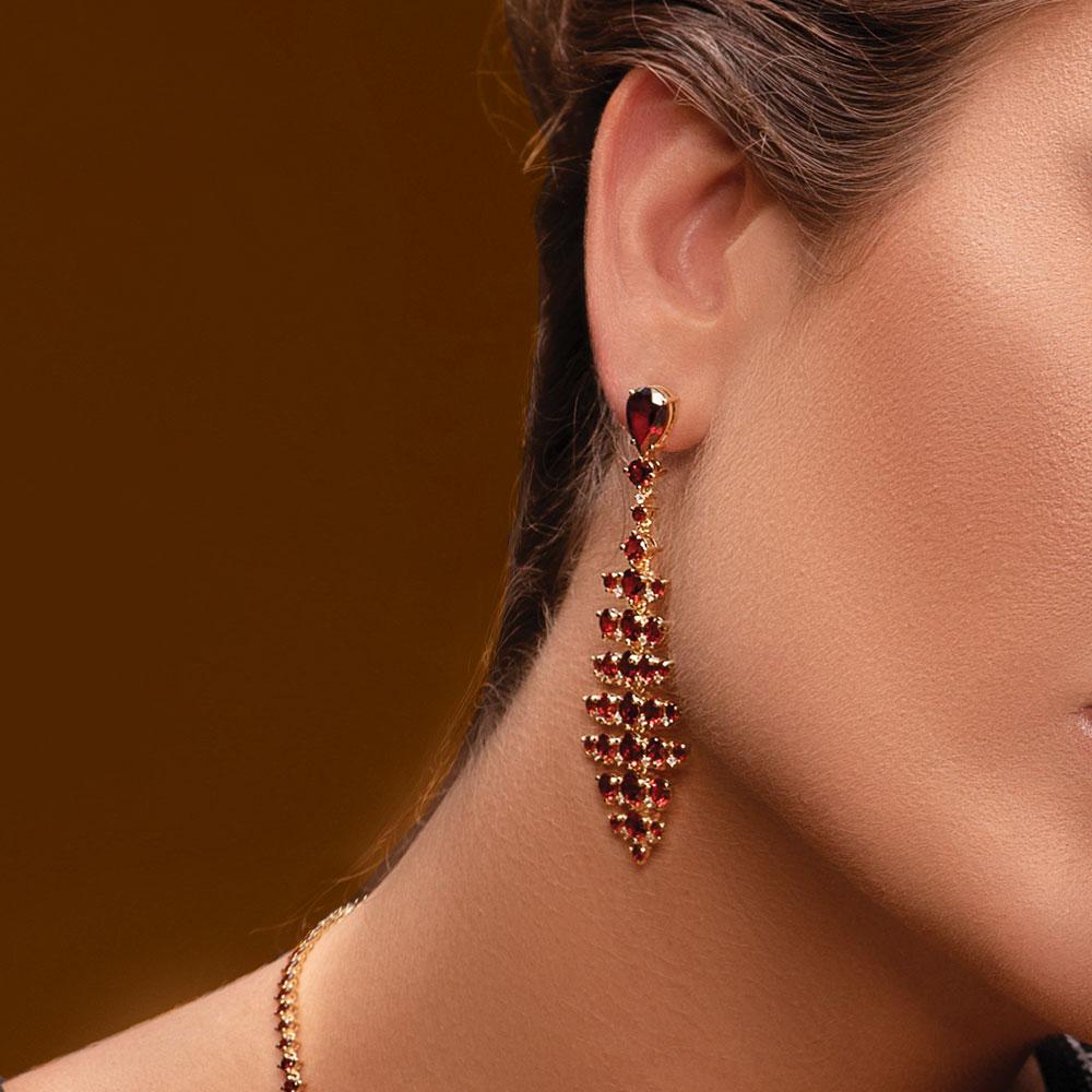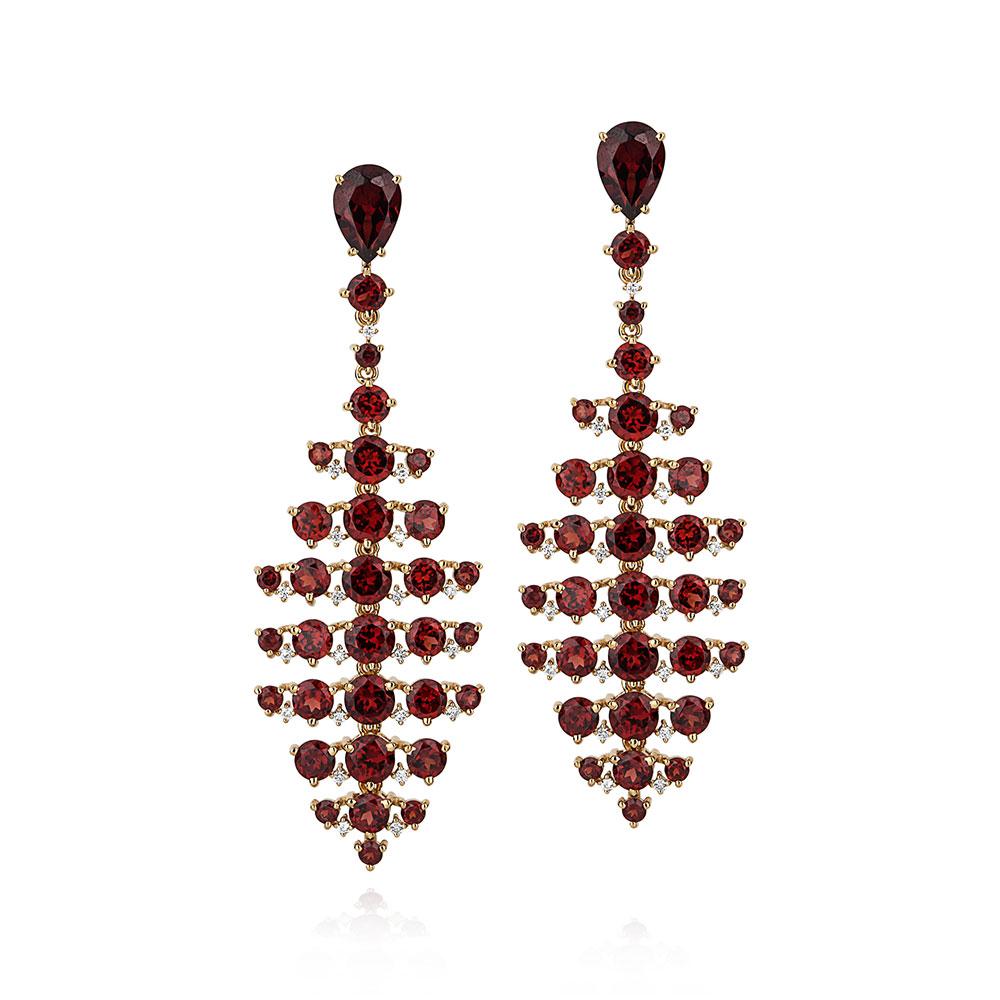 Brinco em Ouro Amarelo com Granadas e Diamantes - Coleção Clássica