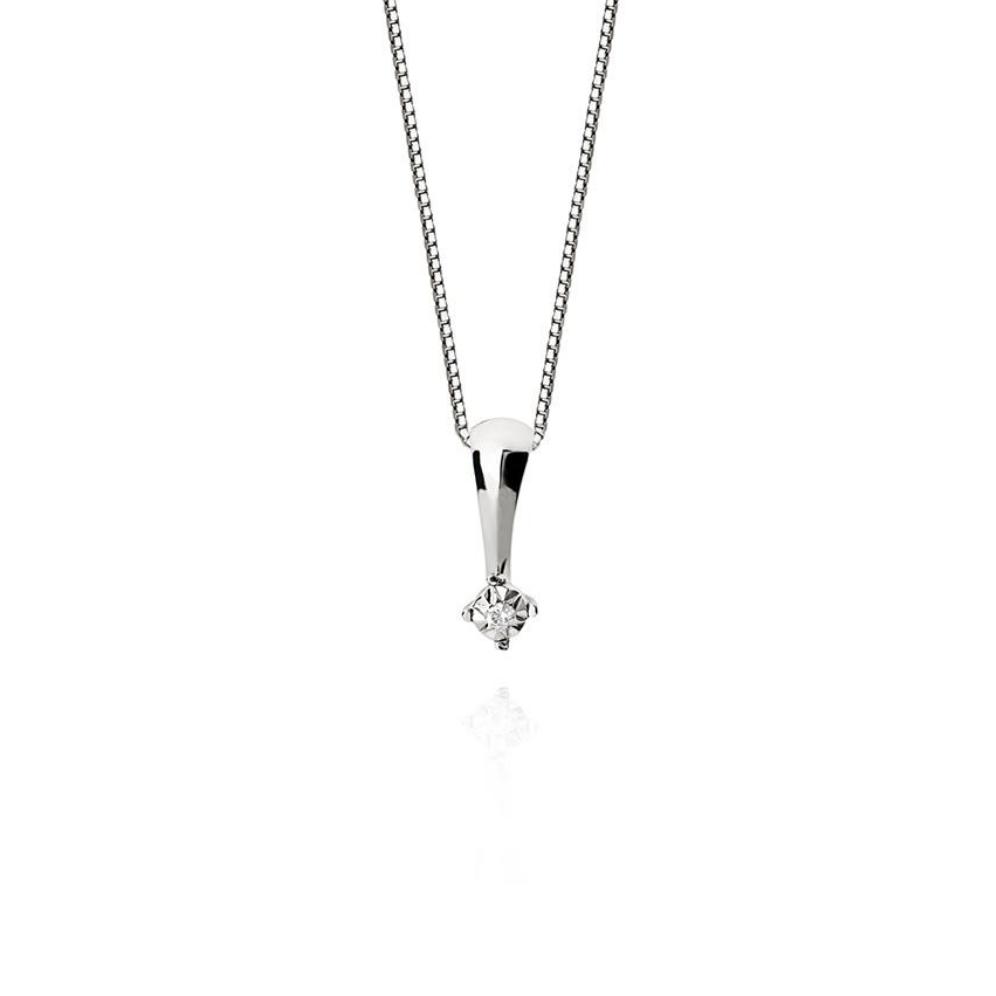 Pingente em Ouro Branco com Diamante - Coleção Solo