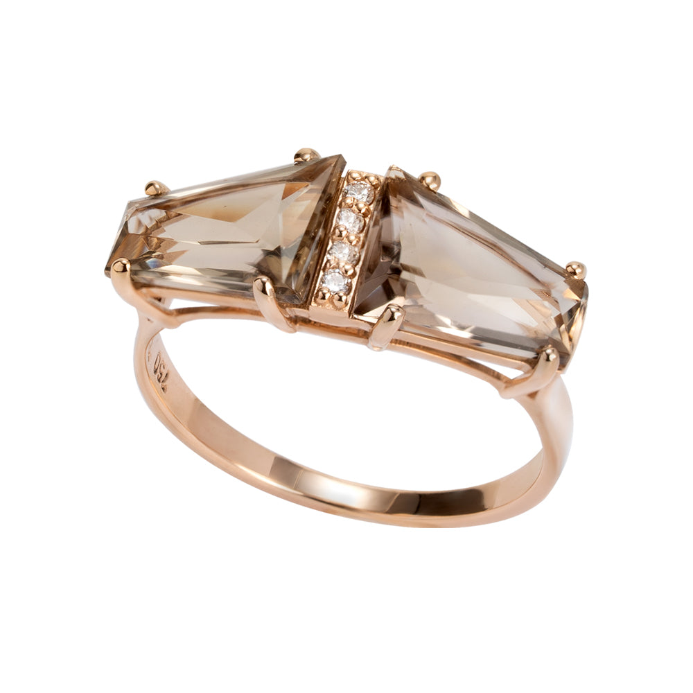 Anel DNA em Ouro Rosé com Quartzos Fumê e Diamantes