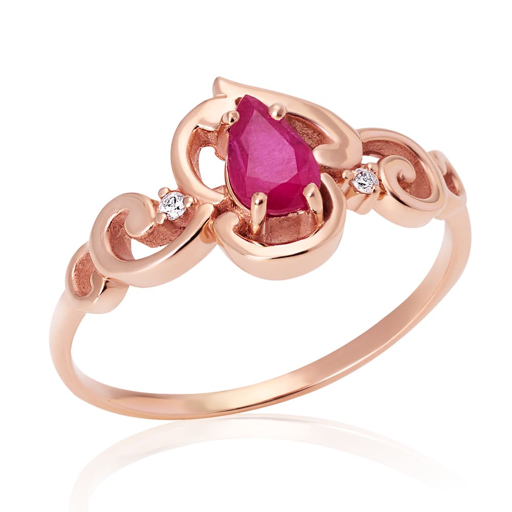 Anel Passira em Ouro Rosé com Rubi e Diamantes