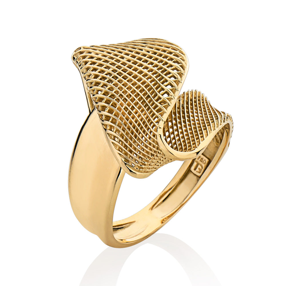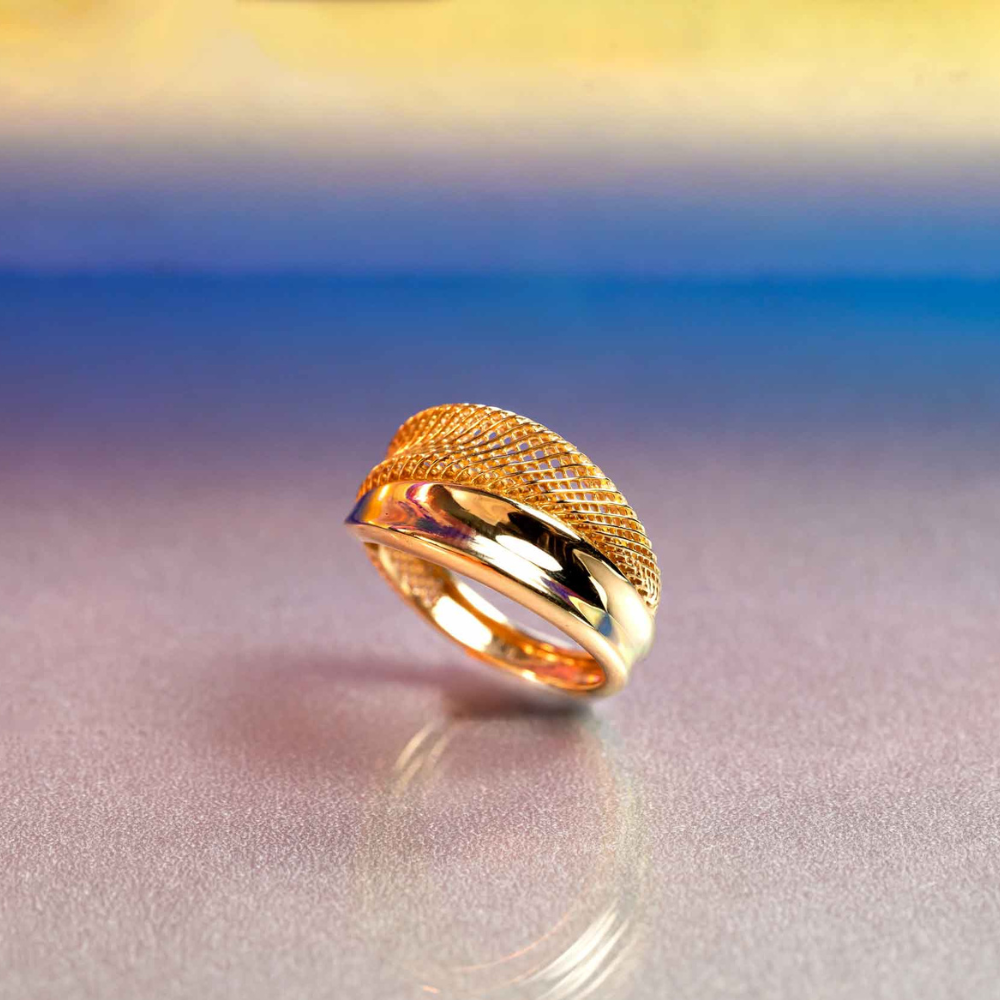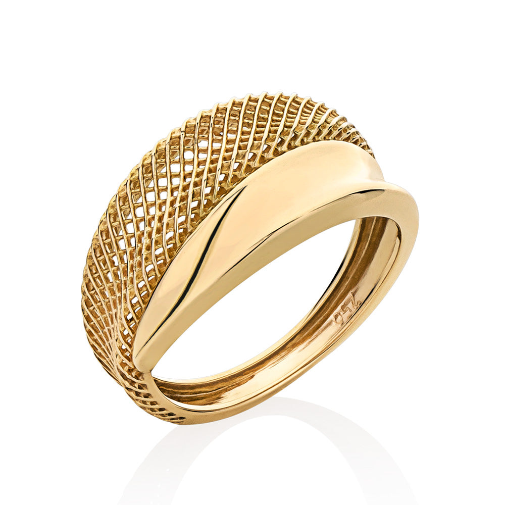 Anel Blend em Ouro Amarelo com Detalhe em Tela Vazada