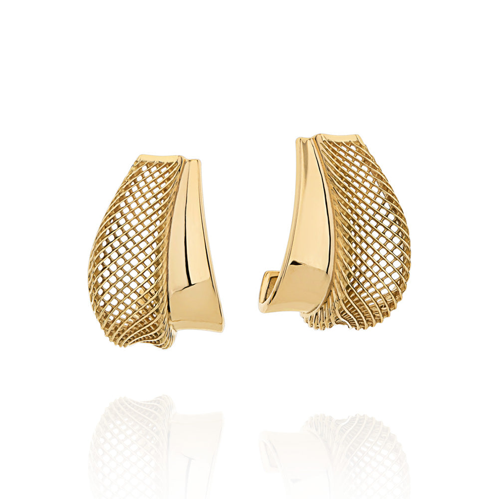 Brinco Blend em Ouro Amarelo com Detalhe em Tela Vazada