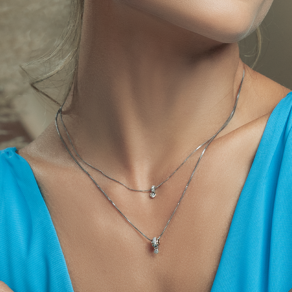 Pingente em Ouro Branco e Ouro Rosé com Diamantes - Coleção Jasper