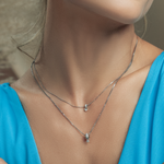 Colar em Ouro Branco 18K com Ouro Rosé 18K. Peso 0,45g. Medida aproximada do pingente: 5mm altura X 3mm largura. Colar com corrente de 45cm em Ouro Branco 18K.