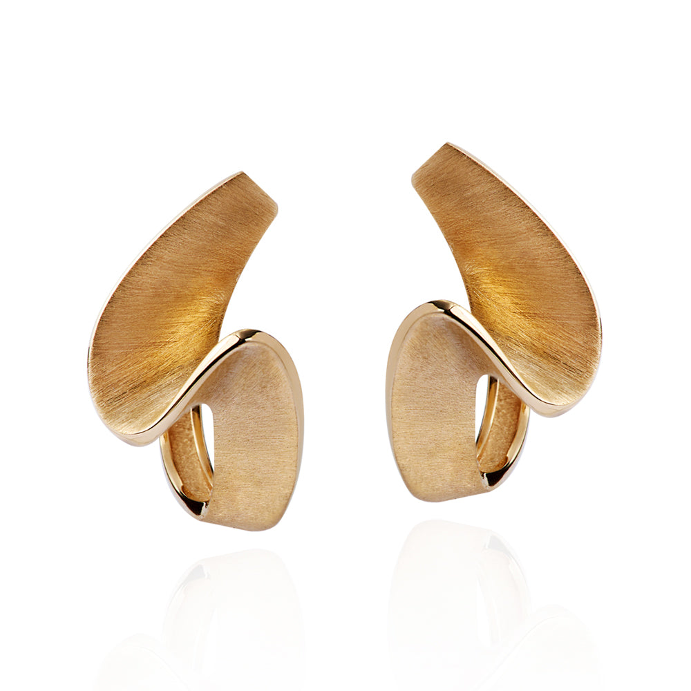O brinco Auris em ouro amarelo 18K traz em seu design fluido e minimalista a essência da coleção: curvas leves que ecoam o movimento e a permanência do ouro. Uma joia delicada e sofisticada, ideal para iluminar o rosto com elegância.