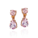 Brinco Cálida em Ouro Rosê com Quartzo Rosa e Citrino