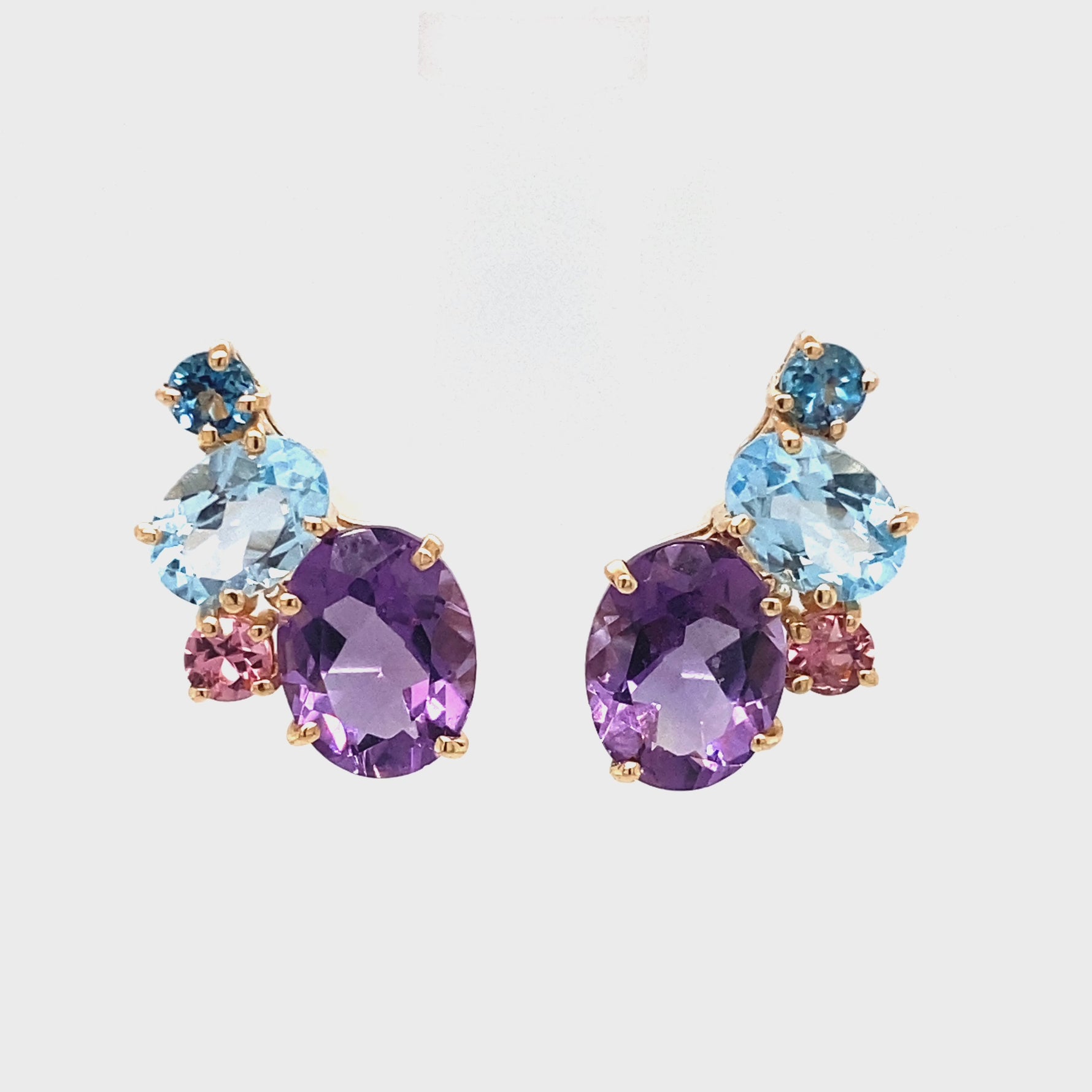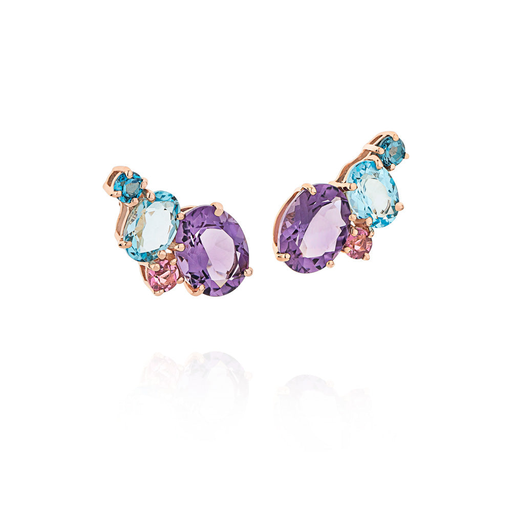 Brinco Lume em Ouro Rosé com Topázio, Ametista e Turmalina Rosa