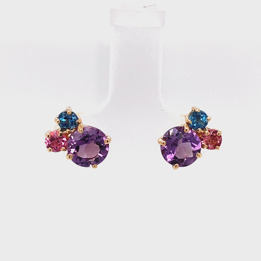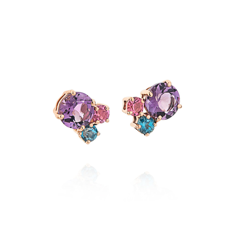 Brinco Lume em Ouro Rosé com Topázio, Ametista e Turmalina Rosa