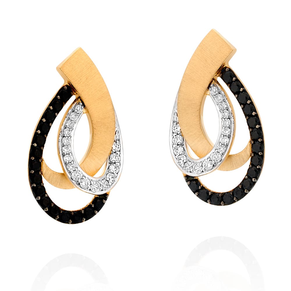Brincos Nanquim em Ouro Amarelo com Espinélios Negros e Diamantes