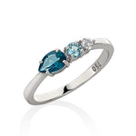 Anel em Ouro Branco com Topázios London, Sky e Branco - Pietra