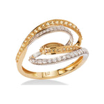 Anel Dualis em Ouro Amarelo e Ouro Branco com Safiras Amarelas e Diamantes