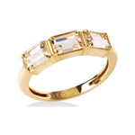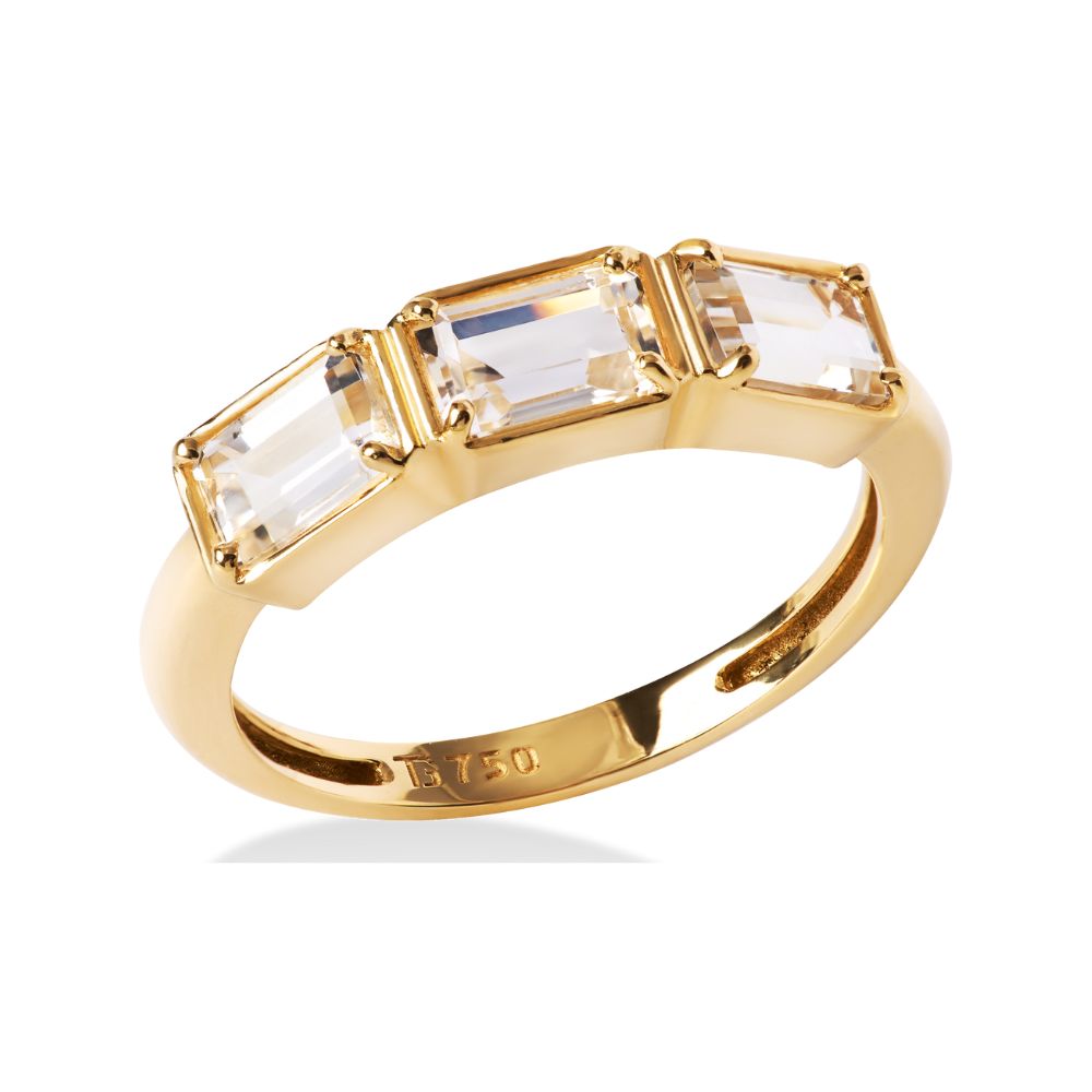 Este anel traz o brilho suave dos topázios incolores em composição linear, criando um efeito luminoso e delicado. As três gemas octogonais valorizam a geometria precisa da peça, que capta a identidade da coleção Eclipse com sutileza e elegância. Uma joia versátil e refinada, ideal para o uso diário ou para elevar produções especiais.