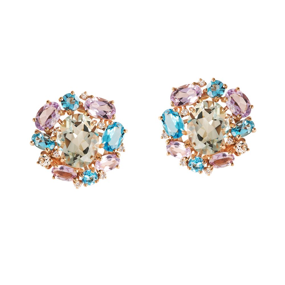 Brincos Sintonia em Ouro Rosé com Ametistas, Topázios, Prasiolita e Diamantes