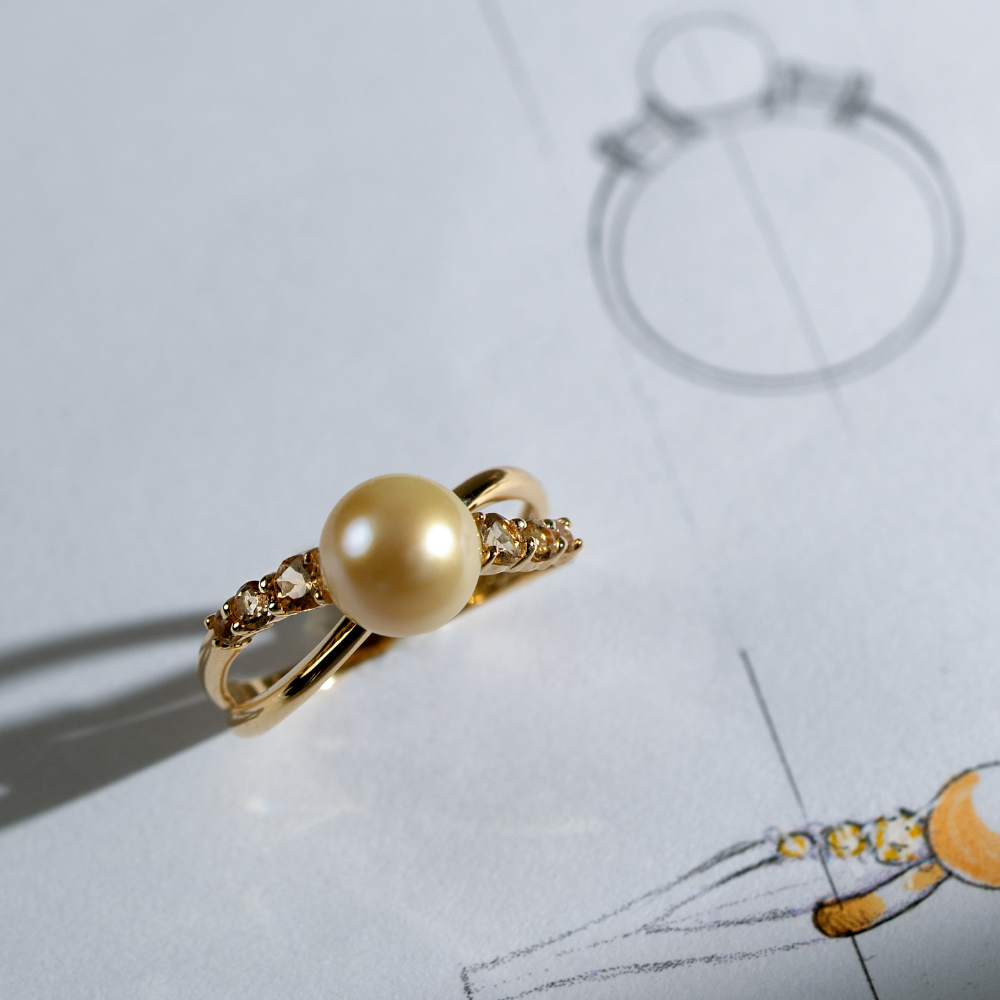 Home-Sunny-Anel Sunny em Ouro Amarelo, Pérola e Citrinos
