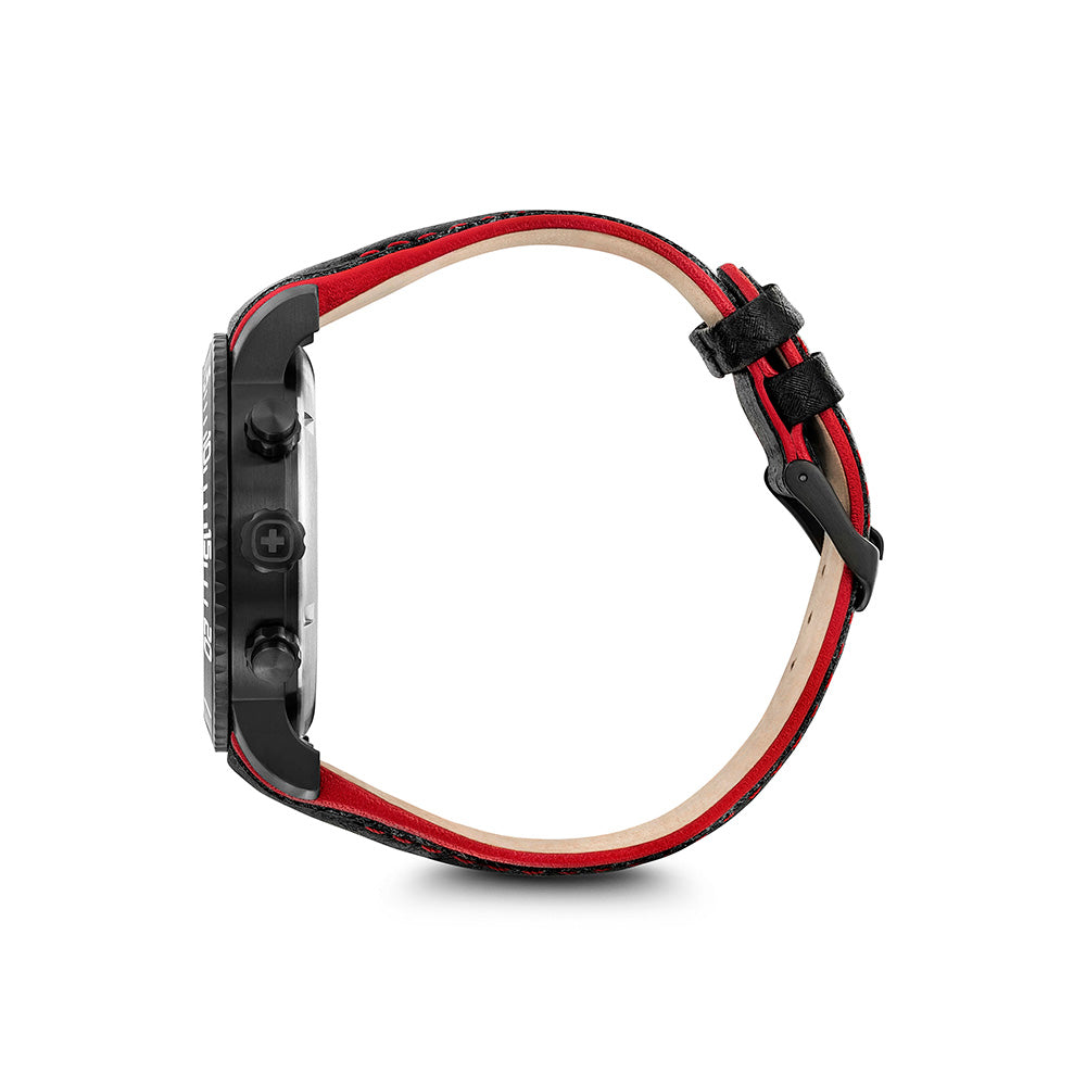 Robusto e esportivo, o novo relógio Roadster em seu pulso fará com que você se sinta pronto para as aventuras do dia. Ele está disponível em diversos modelos dinâmicos, seja em versões com três ponteiros ou cronógrafos, caixas em PVD ou em aço inoxidável preto, equipados com uma grande variedade de pulseiras de aço ou pulseiras de couro. Os ponteiros, numerais e marcadores são revestidos com o Superluminova, que brilha no escuro facilitanto a leitura das horas. A coleção Wenger Roadster tem a caixa de 45mm e resiste a 100 metros de profundidade na água. Todos os relógios da Wenger são cobertos por uma garantia internacional de 3 anos. Cararcterísticas principais ° Relógio Swiss Made / Movimento Quartz ° 100m / 10ATM resistente à água Dimensões Altura: 11,7mm Peso líquidos: 85g Detalhes Movimento: Quartzo analógico Diâmetro: 45mm Cor de discagem: Preto Material de pulseira Couro Pulseira cor: Preto Largura da alça: 22mm Moldura: Moldura giratória unidirecional Resistência à água: 10 ATM / 100 M / 330 FT Garantia Programa de Garantia Wenger de 3 anos