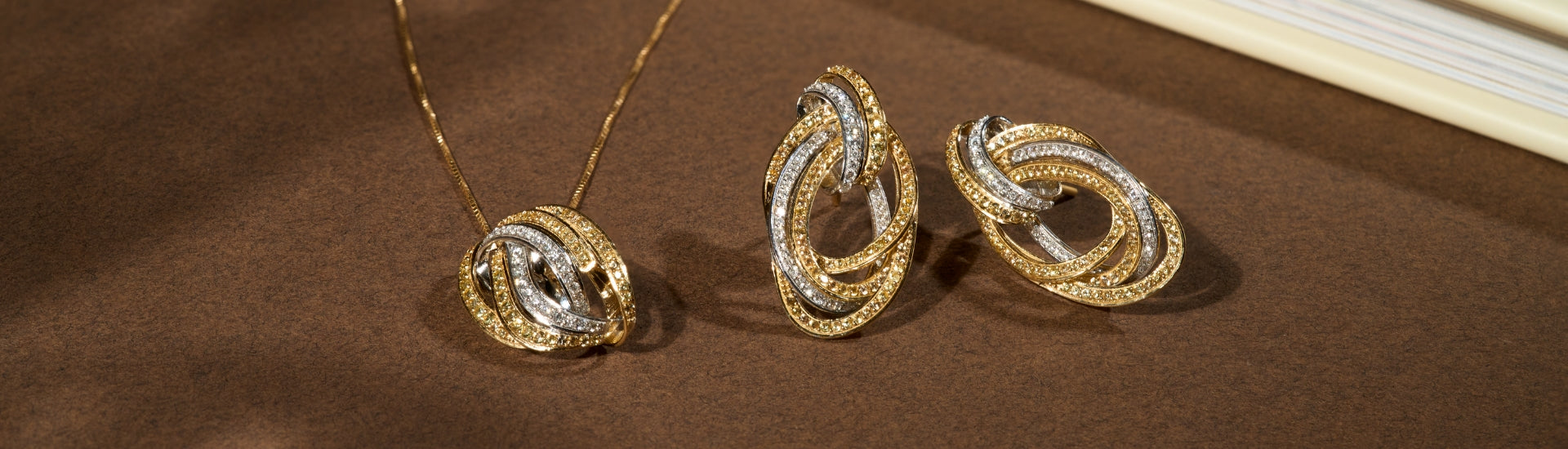 Pingente Dualis em Ouro Amarelo e Ouro Branco com Safiras Amarelas e Diamantes