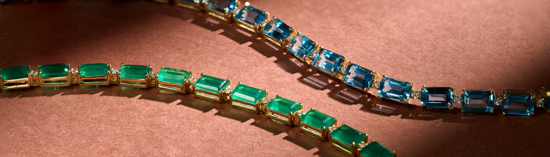 Colar Nuance em Ouro Amarelo com Ágata Verde, Iolita, Topázio e Diamantes
