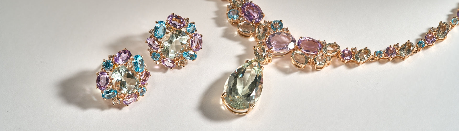 Colar Sintonia em Ouro Rosé com Ametistas, Prasiolitas, Topázios e Diamantes