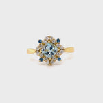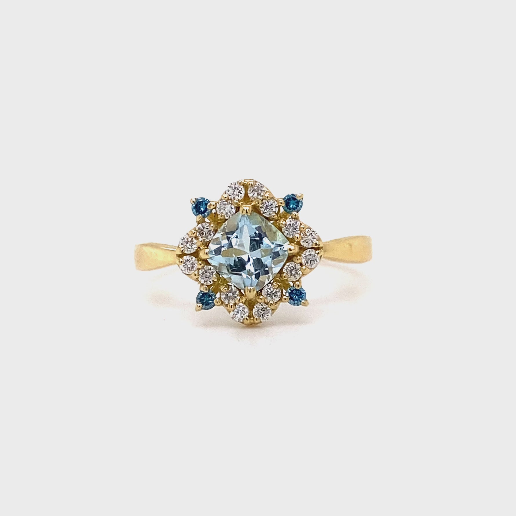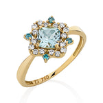 Anel Lace em Ouro Amarelo, Topázio Sky, Diamante Incolor e Diamante Azul