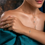 Os 16 diamantes brancos adornam a cravação com um brilho etéreo, enquanto os 4 diamantes azuis adicionam profundidade ao conjunto.
