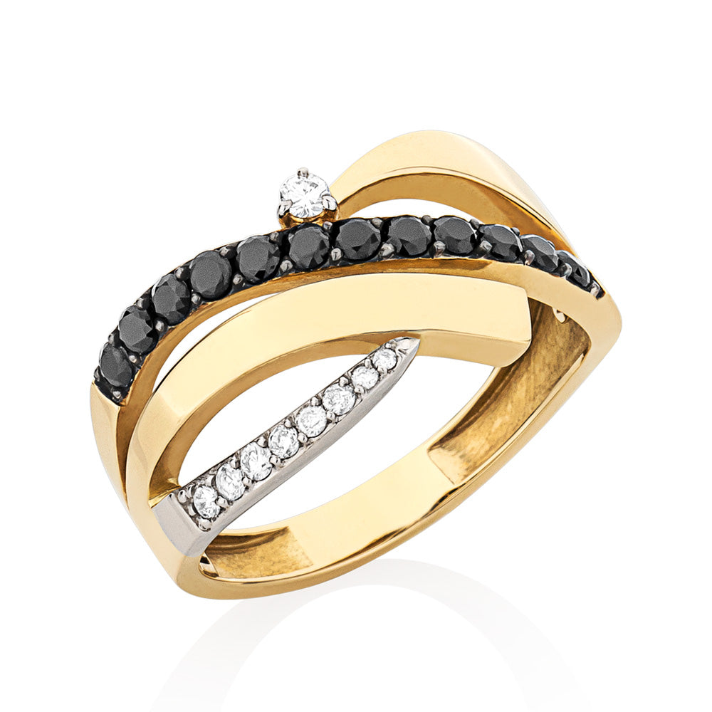 Home-Anel Poente em Ouro Amarelo, Espinélios Negros e Diamantes