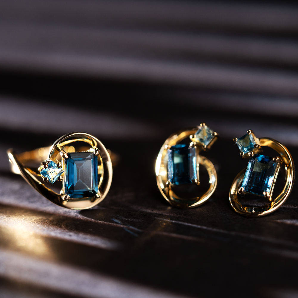 Anel Stone em Ouro Amarelo com Topázios Azuis