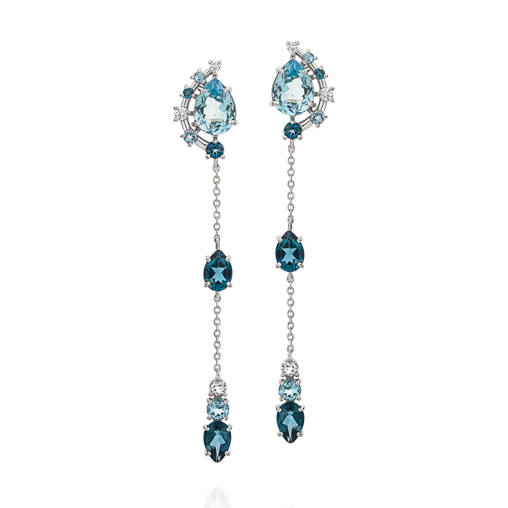 Brinco em Ouro Branco com Topázios London, Sky e Branco - Pietra