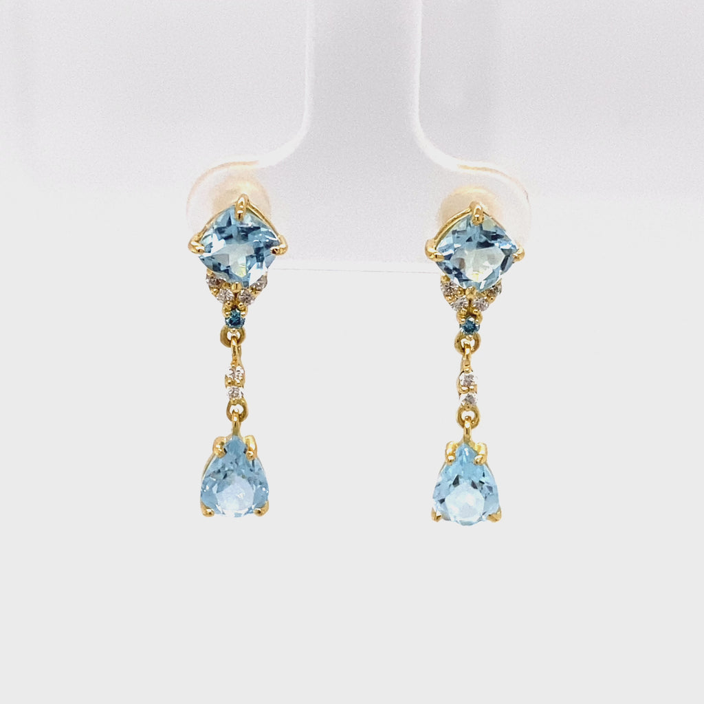 Home-Brinco Lace em Ouro Amarelo, Topázio Sky, Diamante Incolor e Diamante Azul