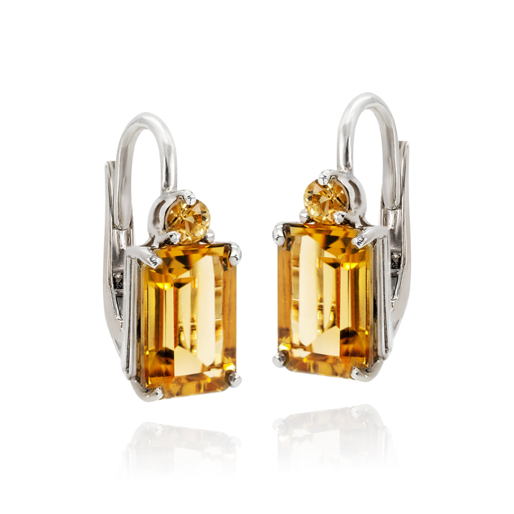 Pedras: 2 Citrino octogonal 10X7 6,0CT e 2 citrino O 3MM 0,20 CT