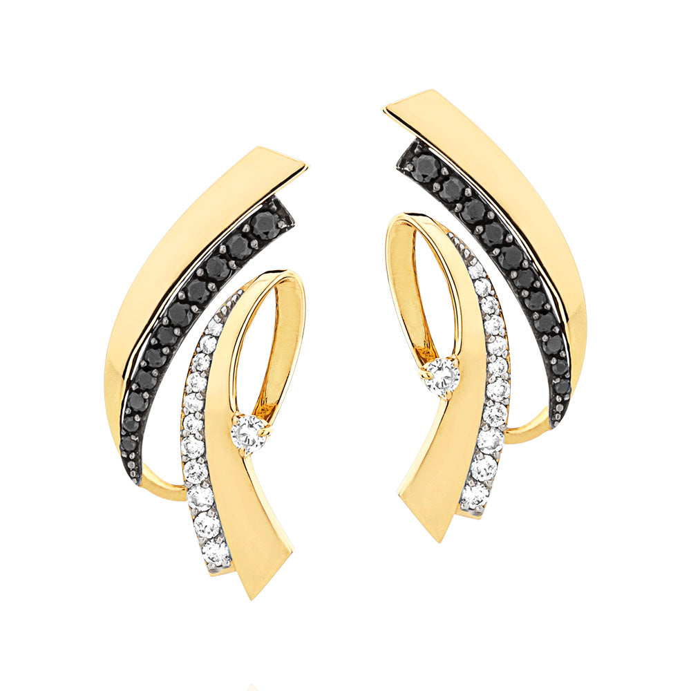 Brinco Poente em Ouro Amarelo, Espinélios Negros e Diamantes