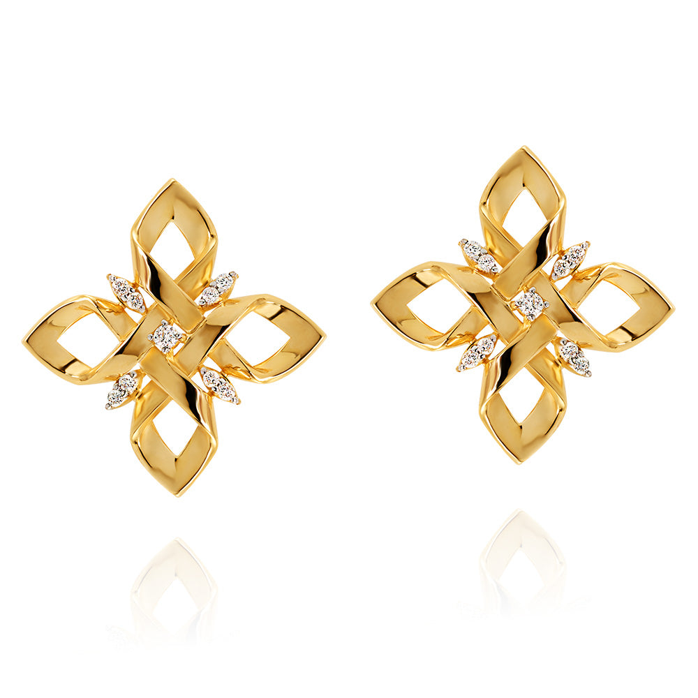 Brincos Entrelace em Ouro Amarelo e Diamantes