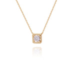 O colar Abrigo em ouro amarelo 18K reflete o afeto e a delicadeza do gesto de proteger. Com diamantes envoltos pela moldura em ouro, é uma joia que transmite emoção e sofisticação em cada detalhe.