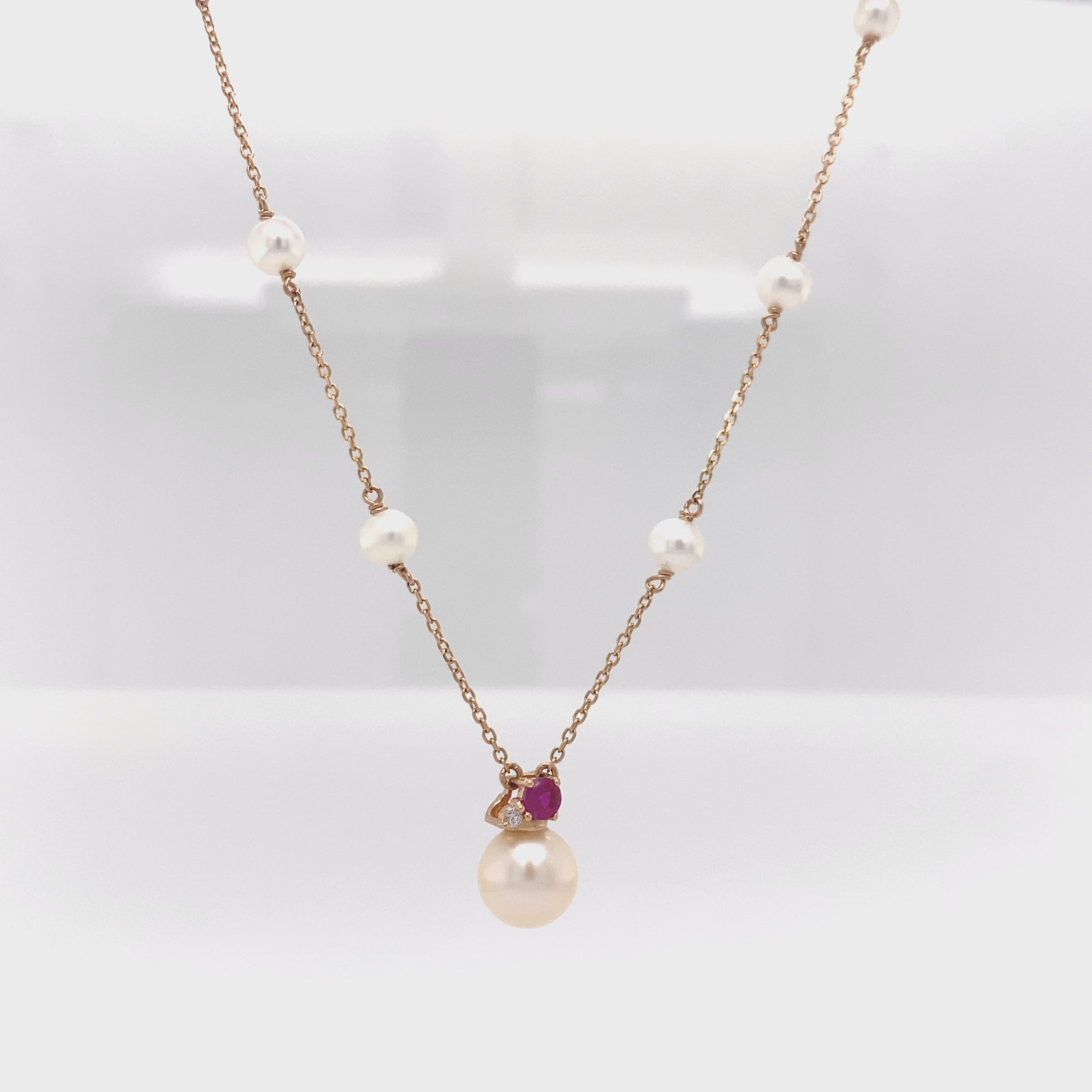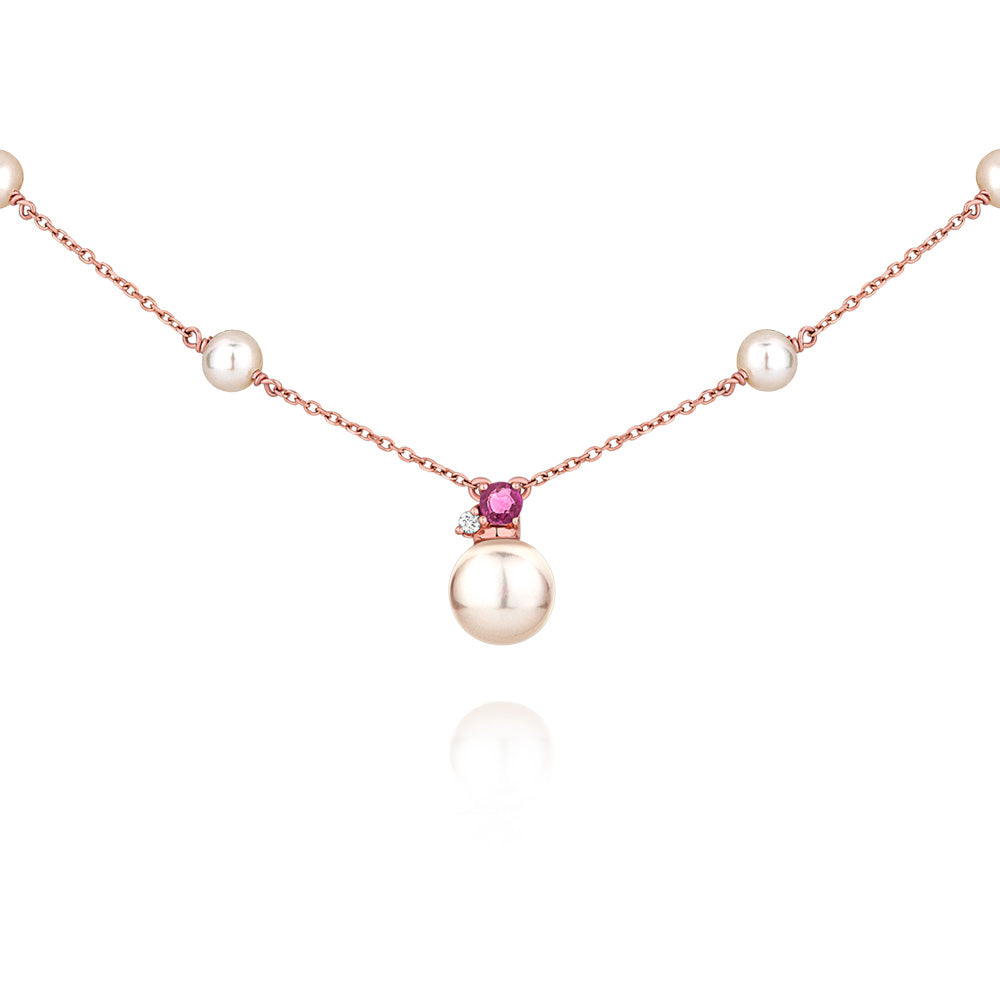Colar Novel em Ouro Rosé, Pérola, Rubi e Diamante