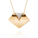 O Pingente Alento apresenta um formato geométrico elegante e moderno, onde o dourado quente do ouro 18K contrasta com o brilho delicado dos diamantes. O design limpo realça a superfície polida e cria um ponto de luz sofisticado no colo. Uma joia perfeita para quem busca um colar de ouro contemporâneo, marcante e versátil.