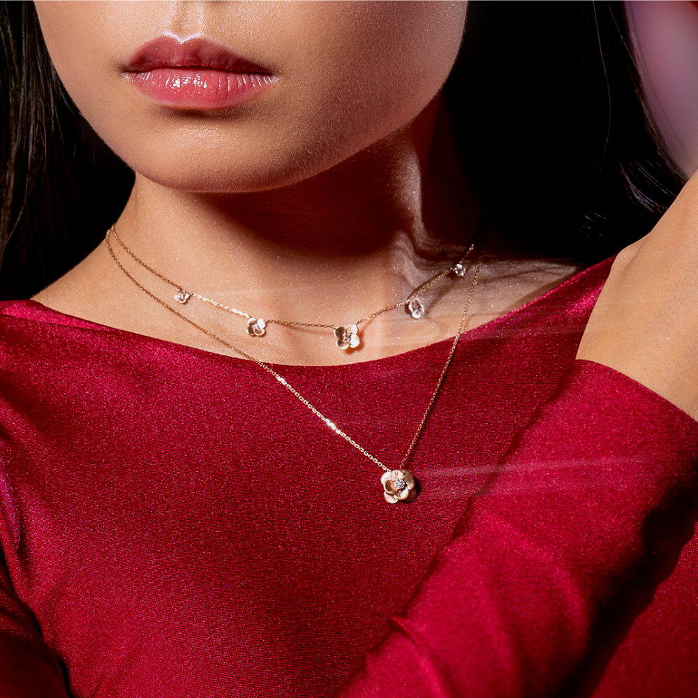 Encante-se com o Pingente da Coleção Blossom, uma peça deslumbrante que combina a beleza da natureza com o brilho dos diamantes. Este pingente refinado apresenta uma delicada flor estilizada, adornada com sete deslumbrantes diamantes centrais, refletindo a elegância e o glamour da coleção. Fabricado em ouro rosé 18K, este pingente garante durabilidade e brilho excepcionais, proporcionando uma peça luxuosa para complementar seu estilo. Com uma flor estilizada meticulosamente trabalhada, este pingente captura a essência da feminilidade e da beleza natural, evocando uma aura de sofisticação e encanto. Os sete diamantes cuidadosamente engastados no centro da flor adicionam um toque de brilho radiante, capturando a luz de maneira cativante e realçando a beleza da peça.