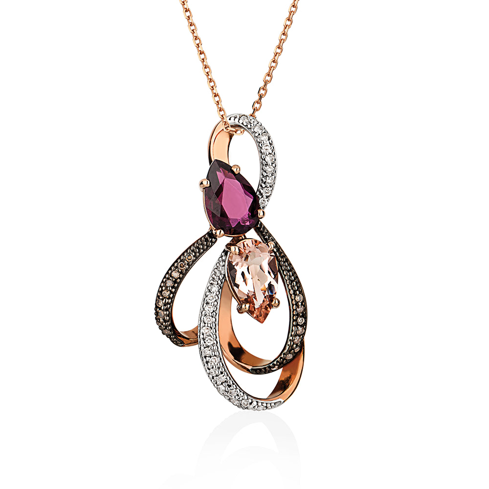 Pingente Veneza em Ouro Rosé com Diamantes, Rodolita e Morganita