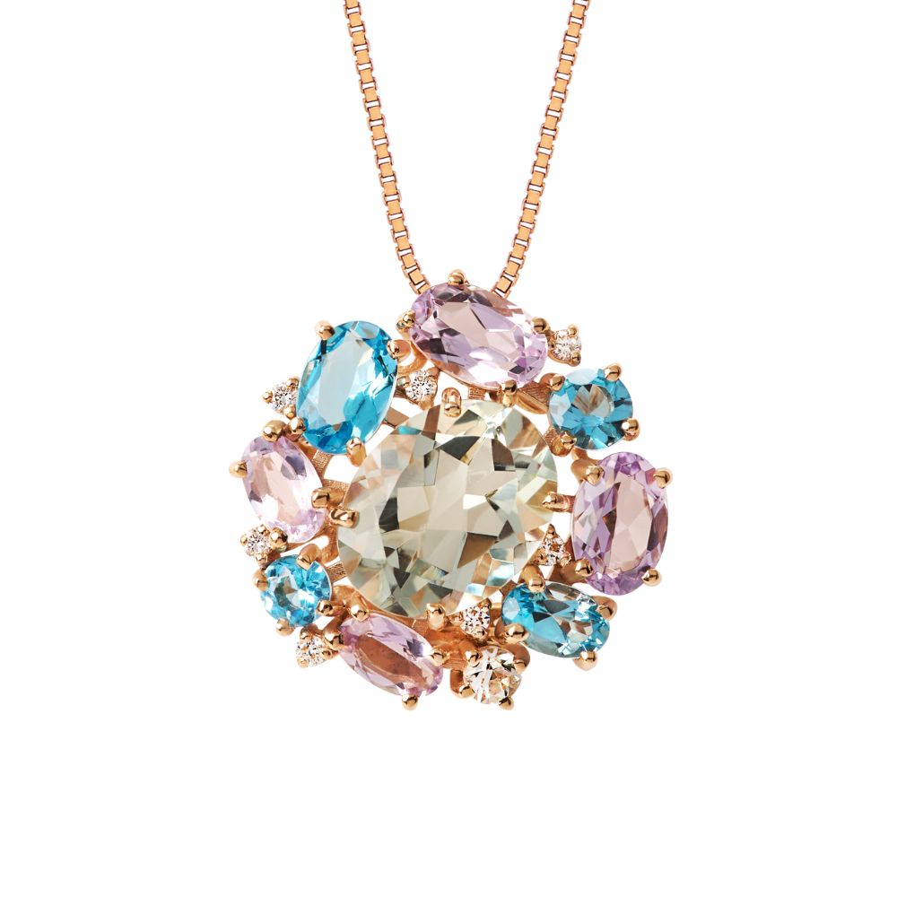 Pingente Sintonia em Ouro Rosé com Ametistas, Topázios, Prasiolitas e Diamantes