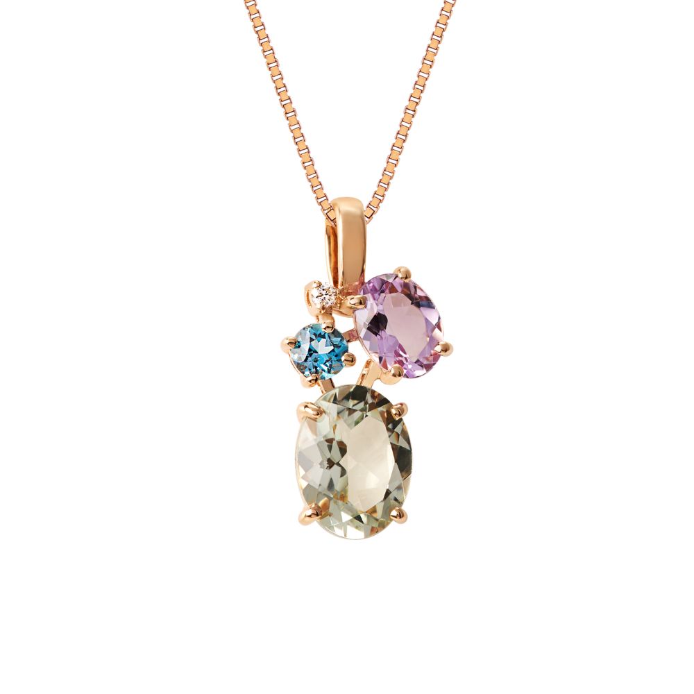 Pingente Sintonia em Ouro Rosé com Prasiolita, Ametista, Topázio e Diamante